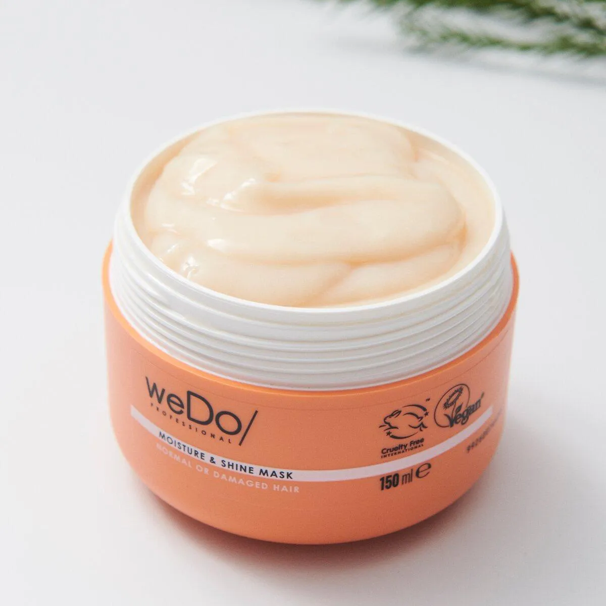 Moisture & Shine Mask WeDo é uma máscara capilar natural ideal para cabelos ásperos, porosos e sem brilho que precisam de uma hidratação intensa. Indicado também para cabelos com coloração, pois ele mantém a vivacidade da cor e combate o frizz.