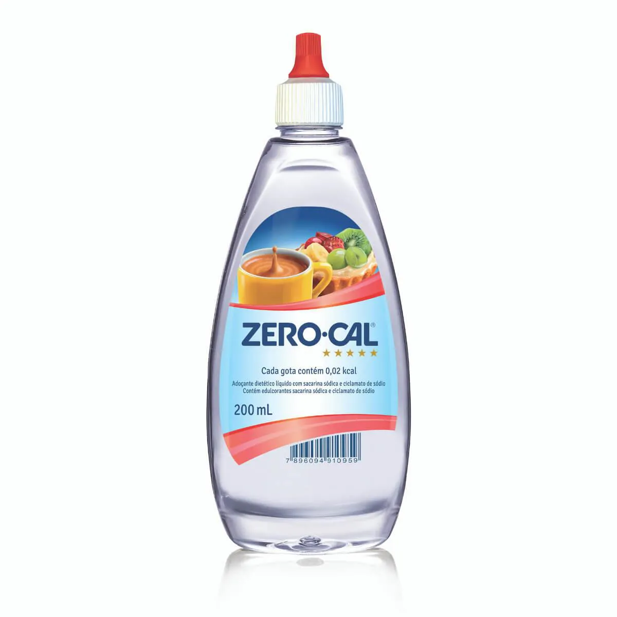 Cada 4 gotas de Zero Cal Sacarina equivalem a uma colher de chá de açúcar.